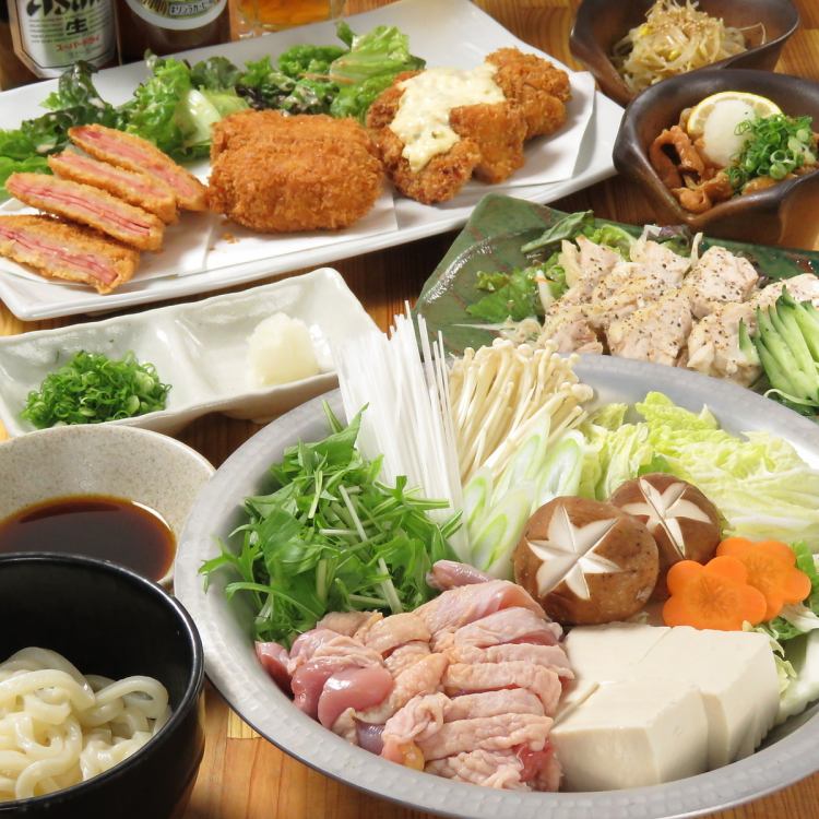 宴会 女子会 デート 天神コース シーザーサラダ とりかわ 選べるもつ鍋付全9品2500円 とりかわ権兵衛 堺東店